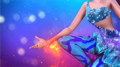 Oblečení po proměně:Top bez rukávů s topasem u krku, rukávky od zápěstí k lokti, minisukně, nízké kozačky, zlatá korunka, nymfí křídla. Vše kromě korunky je v modré, občas až tyrkysové barvě.